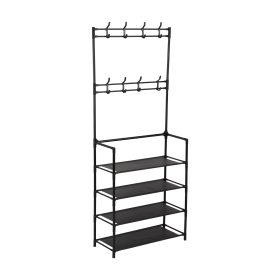 Royalford Portable Shoe Rack- RF12781/ with 4 Shelves and 8 Hooks, 10 kg Capacity, Strong Metal Rods, Easy to Assemble/ Multi-Purpose Storage for Shoes, Cap, and other Accessories/ for Home, Bedroom, Hostel, Living Room/ Heavy-Duty, Space-Saving Design/ Black
