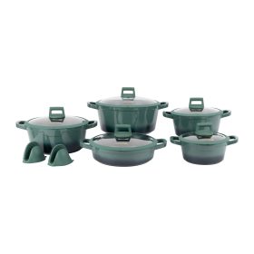 Royalford 10-piece Royal Emerald Die-Cast Aluminum Cookware Set- RF12508/ Granite Coated, with 4 mm Induction Base, Wood-Finish Handles and Tempered Glass Lid/ Includes Casseroles and Fry Pan/ Blue
