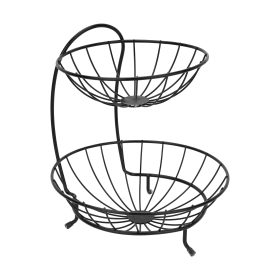 Royalford 2-Tier Fruit Basket- RF13044/ for Fruits and Vegetables, Stainless Steel Storage Organizer with 2 Layers/ for Kitchen, Dining Table, Countertops, etc./ Open Design, Easy to Clean and Maintain/ Black