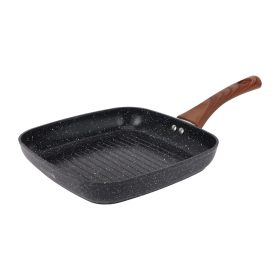 Royalford 24 cm Nonstick Grill Pan – RF12955/ Ceramic 5 Layer Coating, Aluminum Pans with Wooden Finish Bakelite Handle/ Induction Compatible, Perfect for Grilling Steaks, Seafood, Vegetables, Sandwiches, Kebab, etc./ Black