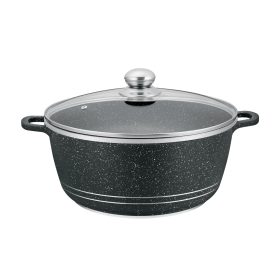 Royalford 44 cm Die Cast Casserole- RF12921/ Non-Stick Cookware with Granite Coating, Compatible with Hot Plate, Halogen, Gas Cooktops/ with Tempered Glass Lid, Perfect for Cooking Stews, Curries, Soups, Rice, Etc. / Black