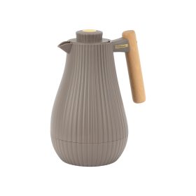 Royalford 1000 ml (33.5 oz) Insula Vacuum Flask with Wooden Handle- RF12972/ with Pink Glass Inner and PP Outer Body, Keeps Your Drinks Hot or Cold, Asbestos-Free and Hygienic/ Leak-Proof and Portable Design, Suitable for Indoor and Outdoor Use/ Grey
