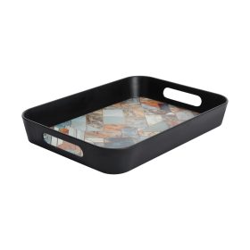 Royalford Melamine Serving Tray- RF13117/ Rectangular Tray with Elegant and Sleek Tile Print Design/ 38.5×25.5 cm, Multi-Purpose Flat Serveware, Ideal for Serving Tea, Drinks, Food, Dcor Items, etc./ Easy to Use and Maintain/ Abstract