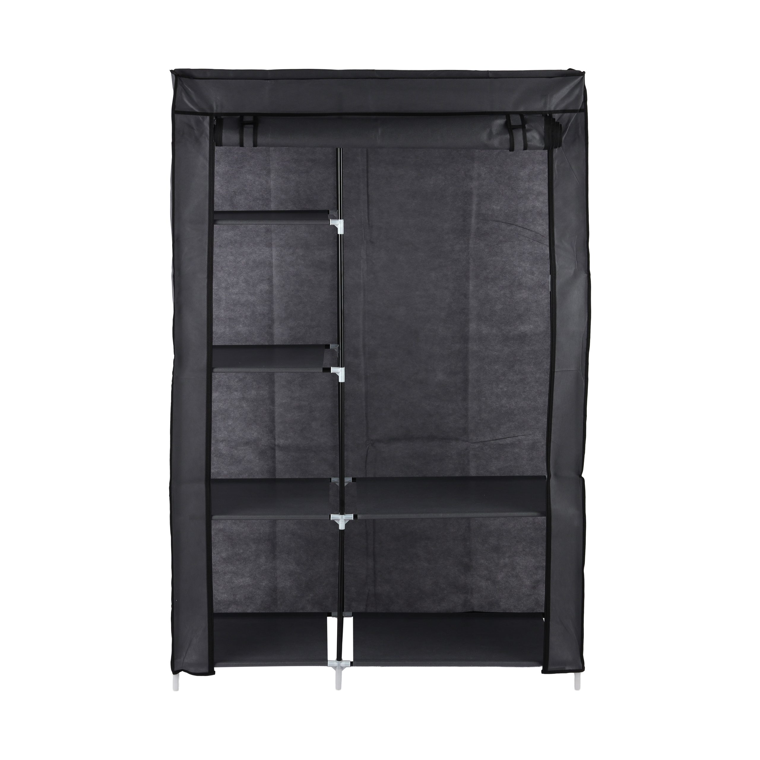 Organize your clothes and accessories effortlessly with this spacious and foldable 6-shelf portable wardrobe. The Royalford wardrobe has been innovatively designed by professionals to provide you with a simple but sturdy solution for storing your clothes, shirts, dresses, accessories, watches, etc. Made from the highest quality materials with a fabric cabinet and strong metal rods with PP connectors, this wardrobe is high in efficiency and appearance. The wardrobe is durable, helps in maintaining a clean and tidy home, and is built to last a lifetime. Its outer cover offers premium-quality and long-lasting zippers, thereby making it durable. The wardrobe is also easy to move around, so you can use it in any room of the house. The elegant and durable stand is versatile and serves multiple purposes. Its strong and sturdy structure contributes to its durability. The stand is lightweight and can be easily carried around. The compact design allows you to save a lot of space. The anti-skid base prevents skidding and slipping, ensuring complete safety. Its 53 metal rods and 30 PP connectors form a stable structure capable of holding up to 15 kg of evenly distributed weight. Made of premium-quality materials, the stand does not require any maintenance and is very easy to clean. The premium-quality color does not fade easily and enhances the lifespan of the product. It is easy to assemble and user-friendly. The grey color, modern design, and efficiency make it a smart choice for your space. It measures 105x45x165 cm in size and weighs 2.37 kg.