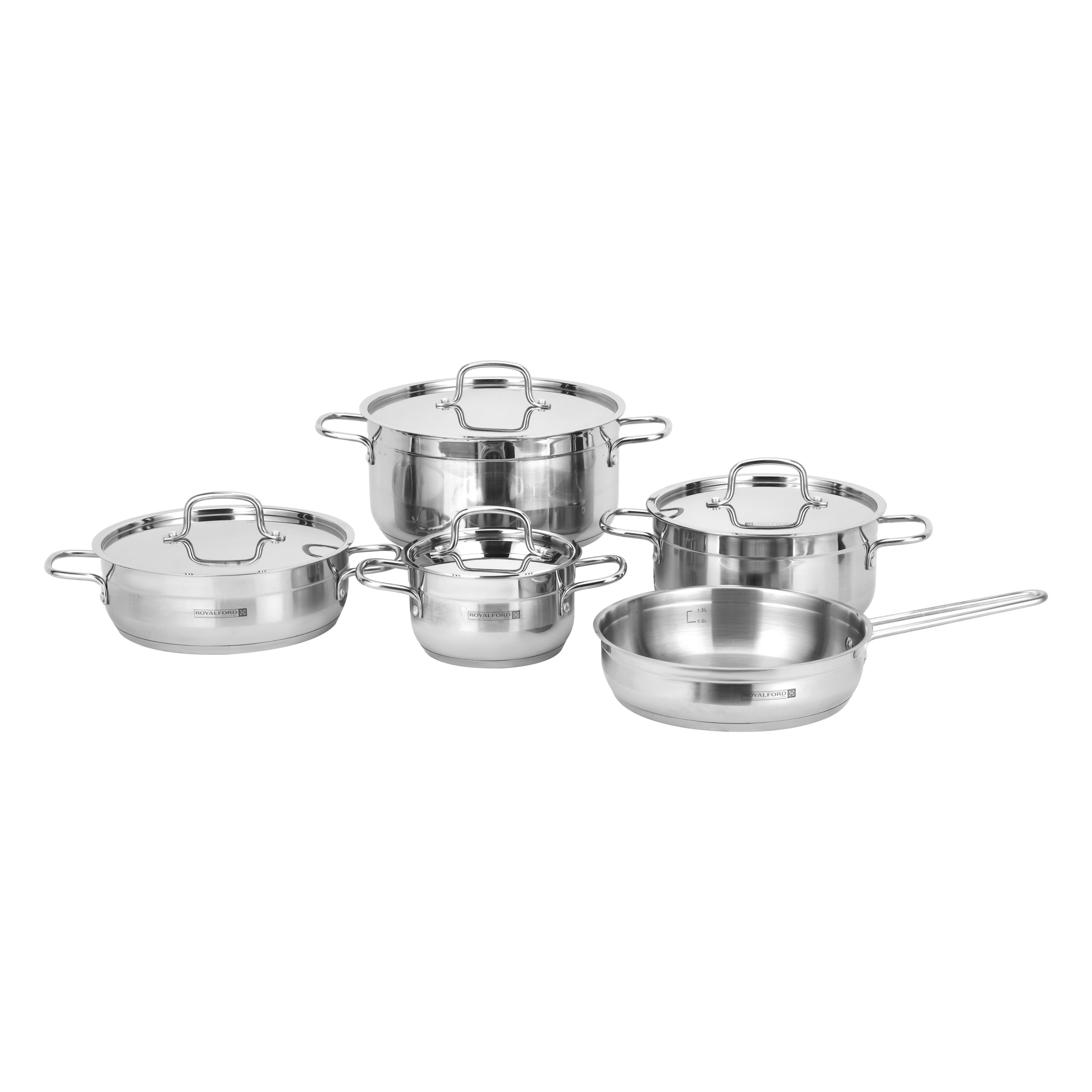 Royalford Rockmaz 9-Piece Stainless Steel Cookware Set- RF12925/ Induction Compatible, Includes 4 Casseroles with Lids and 1 Frypan, Dishwasher-Safe/ Tri-Ply Construction, Perfect for Family Dinner, Kitchen/ Silver