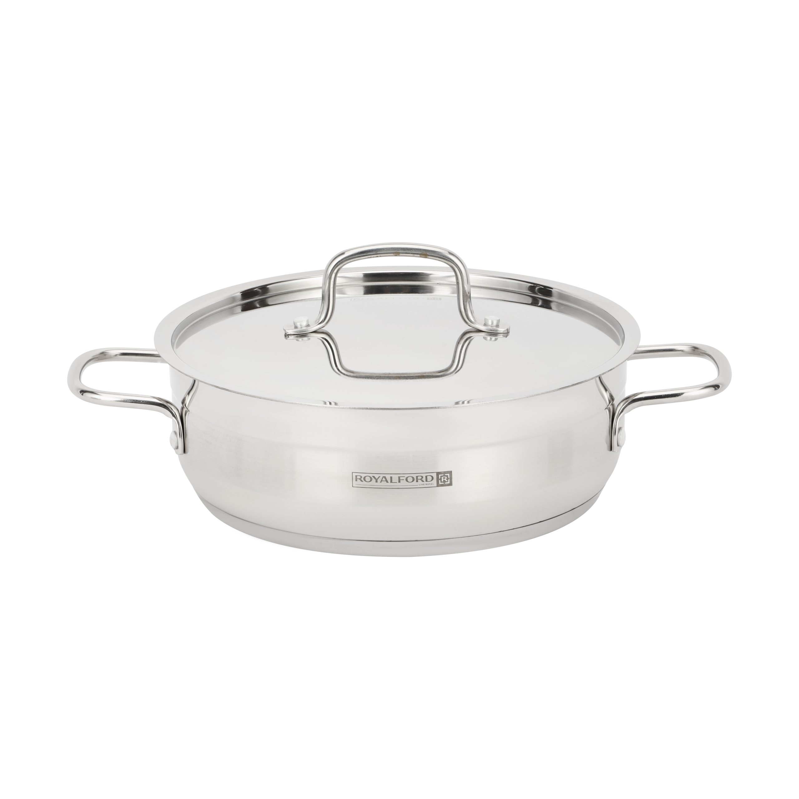 Premium 9-piece stainless steel set built for performance, style, and everyday perfection. From casseroles to pans, the Royalford Rockmaz 9-piece stainless steel cookware set is perfect for a starter home. The classic and shiny quality of these pots makes them a stylish addition to any home decor. The set includes a 26(d)x13 cm casserole with lid, a 24(d)x8 cm casserole with lid, a 22(d)x11 cm casserole with lid, a 16(d)x9 cm casserole with lid, and a 24(d)x6 cm frypan. The flat induction base is compatible with other stoves such as gas, ceramic, halogen, and hot plate cooktops. The stainless steel lids help lock in flavor and moisture, while ergonomic handles offer a firm, cool, and comfortable grip. The set is easy to clean and can be washed in a dishwasher, making it low-maintenance. Featuring a glossy silver color, a modern design, and long-lasting durability, the set makes a thoughtful gift. The set measures 55.5×32.5×19 cm in size and weighs 9.198 kg. Inspire the inner chef in you, get that apron on with this stylish beginner cookware set, and prepare healthy and delicious meals in the comfort of your home.
