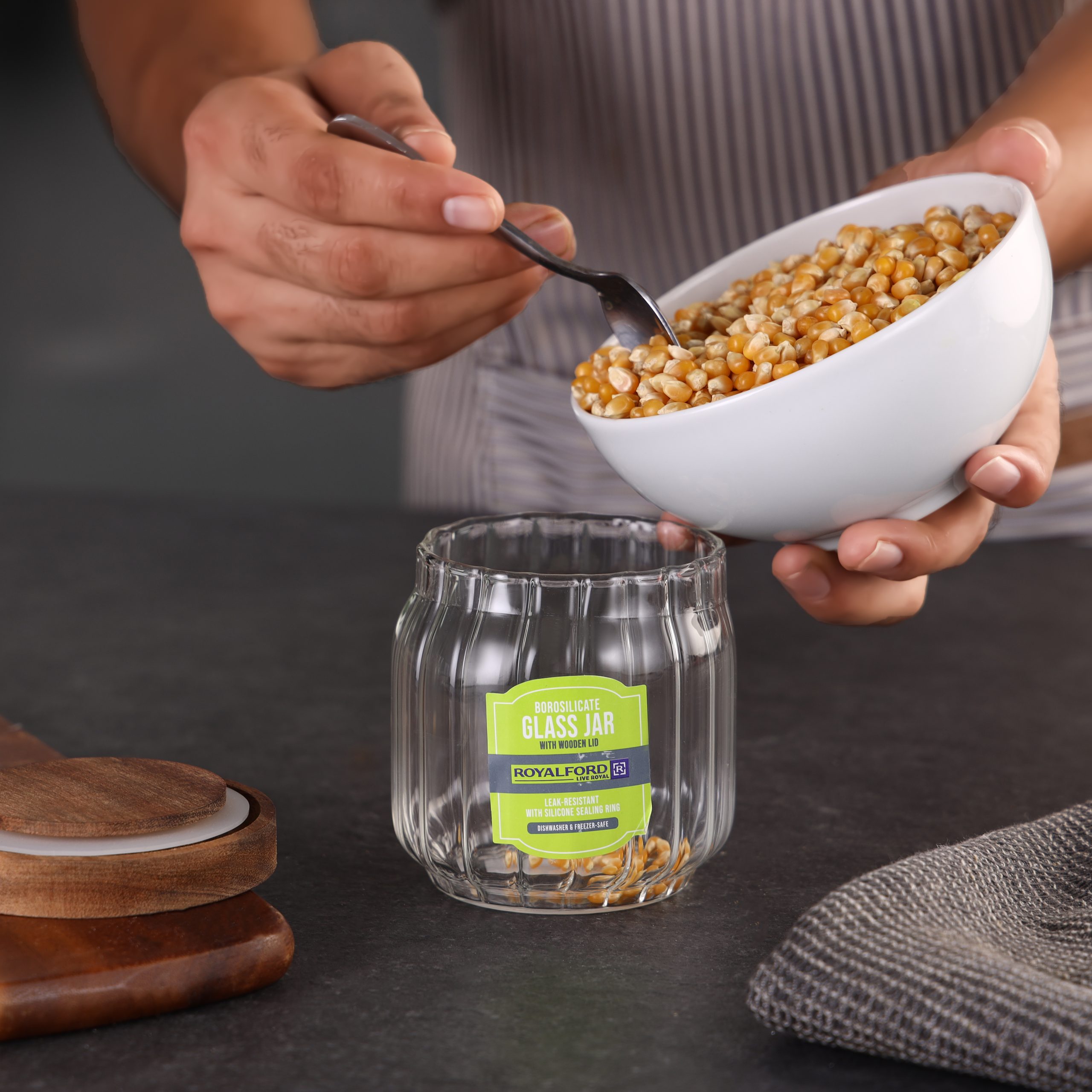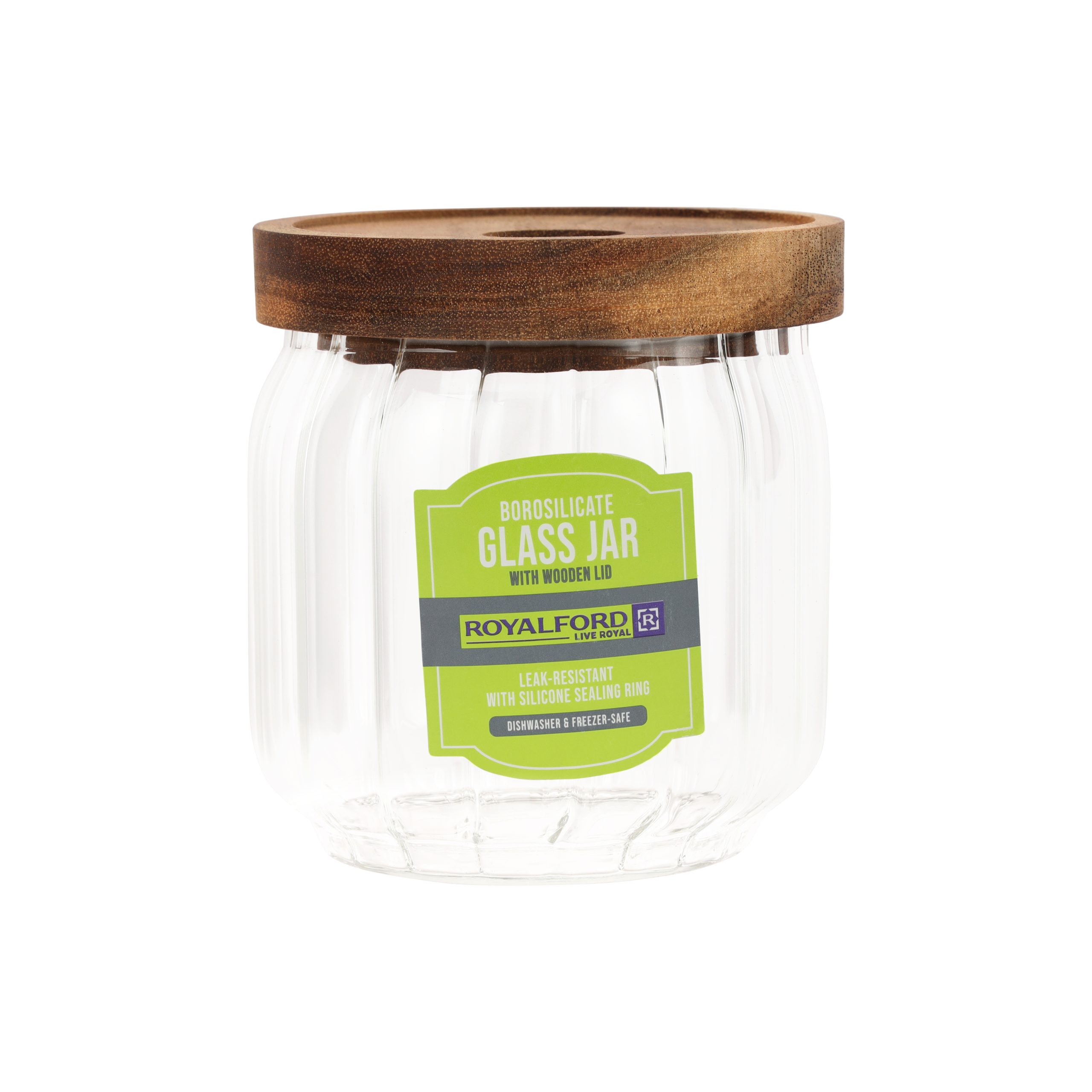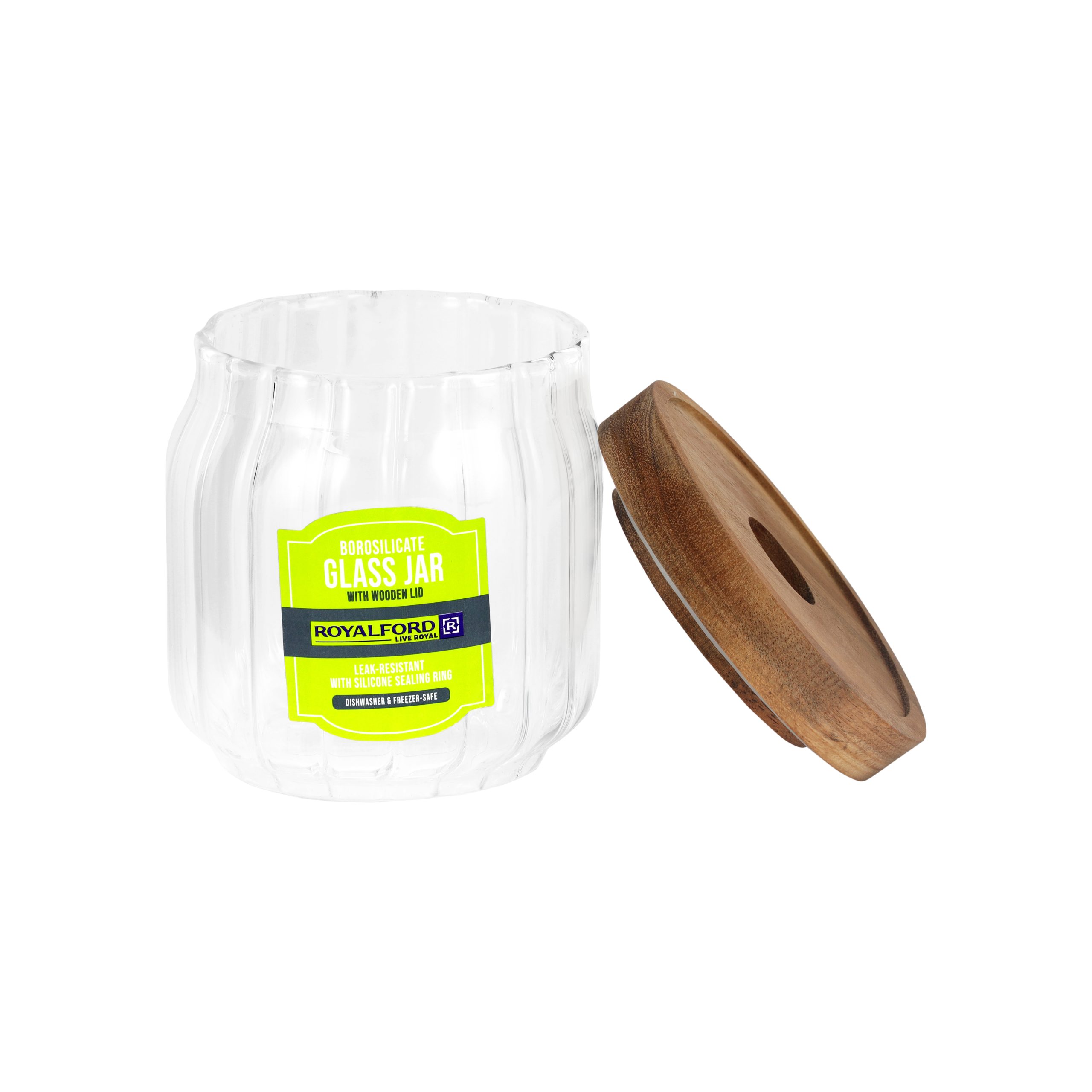 Your kitchen’s new favorite jar. Organize your kitchen or workspace in style with this sleek and durable Royalford borosilicate glass jar. With a generous 350 ml capacity and compact size (9(d)x9.5 cm), it’s the perfect storage solution for dry ingredients, snacks, spices, or even bathroom essentials. With a high-quality borosilicate glass body and a wooden lid, the round airtight jar can keep food fresh and safe for a long time. The jar is made from food-grade, non-toxic, BPA-free material and does not harm your body in any way. This transparent glass jar with an airtight wooden lid has a variety of uses. It can be used to store coffee beans, dried fruits, cotton pads, or craft supplies and is designed to blend seamlessly into any modern or minimalist space. The transparent body allows you to monitor the contents inside without opening it. The airtight lid with a thick silicone liner ensures that the contents remain fresh and tasty. It is also easy to clean, easy to maintain, and can be washed in a dishwasher. The compact size and shape make it easy to store. It is safe to handle as it has round and smooth edges. The product stands out in terms of looks and efficiency. The glass jar weighs 0.180 kg.