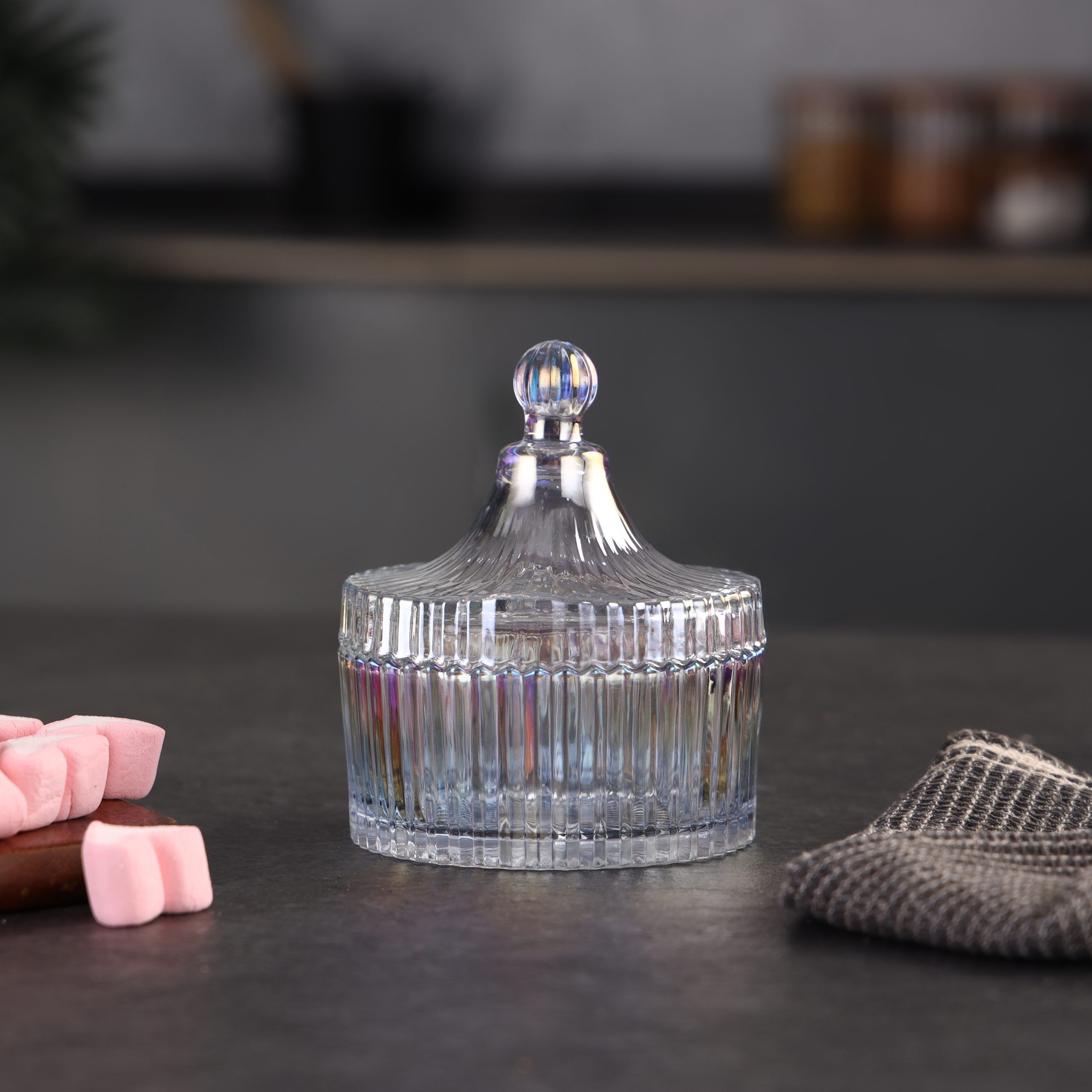 Royalford Multipurpose Glass Candy Jar- RF12797/ Elegant and Sleek, Durable and Long-Lasting Construction/ 10.5(d)x12.5 cm, Storage Box with Clear Lid and Body, Ideal for Sugar, Dry Fruits, Candies, Tea Leaves, Small Pantry Items, etc.