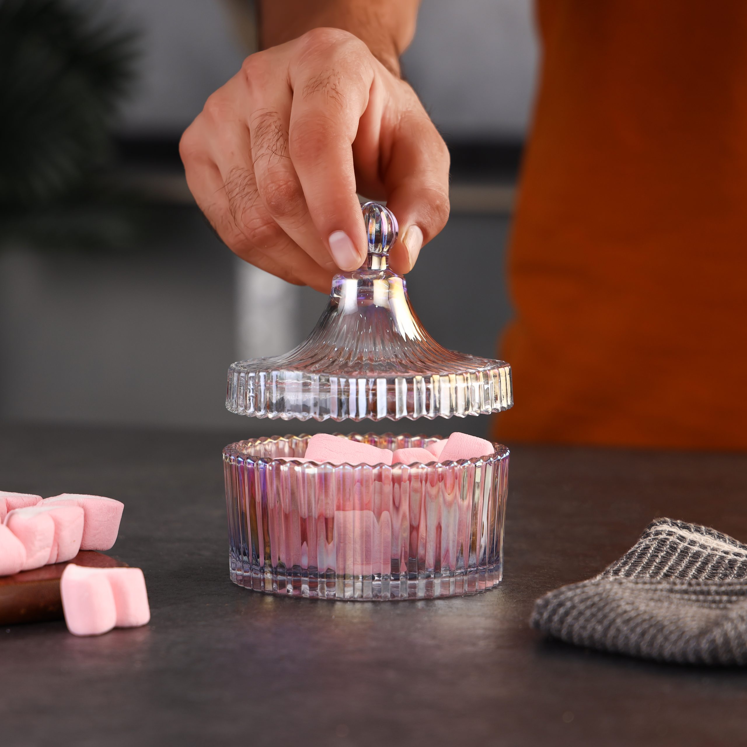 Freshness sealed in glass with the Royalford Sodalime Glass Candy Jar, designed for both style and practicality. The jar is made of high-quality, strong, long-lasting, hygienic, odorless, and safe soda-lime glass material and is specially designed for everyday use. The jar is adaptable and can be used for a variety of purposes. With its elegant design and clear lid and body, the jar will leave your guests impressed. This jar with a lid measures 10.5(d)x12.5 cm and can be used to store candies, cookies, dry fruits, snacks, and much more. In addition to being useful on a dining table, dessert table, nightstand, desk, or countertop, the jar also makes a gorgeous decoration. It can also be filled with potpourri, accessories, and much more. Its clear lid allows you to easily see the contents, making it a stylish yet functional addition to your kitchen, dining table, or even festive setups. This is a staple for any clutter-free surface and keeps it classy. The jar will add the right amount of elegance to your hosting space and will fit in with any decor. The jar can be used at home, in restaurants, or on any occasion. In addition to being made from high-quality materials, this jar has a longer shelf life. A comfortable and secure grip is ensured by the lightweight jar’s ergonomic design. In addition to its attractive design, it keeps your space clutter-free and stylish.