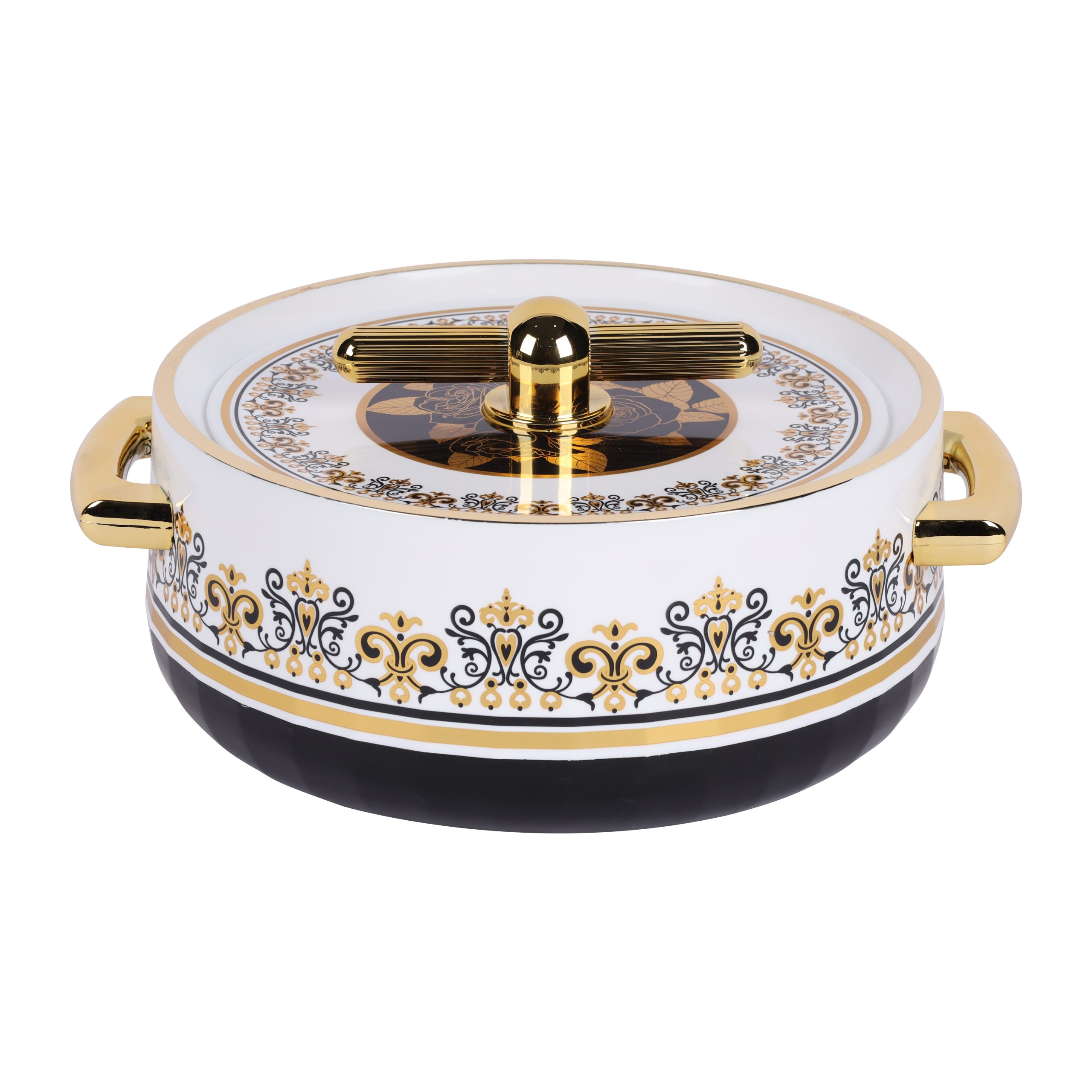 Royalford 1700 ml Heritage Insulated Hotpot- RF12992/ Food-Grade Hot and Cold Casserole with Super PU Insulation, PP Outer Body and Stainless Steel Inner/ Firm Twist Lock, Elegant and Unique Design, Perfect for Rice, Roti, Curry/ Black and White
