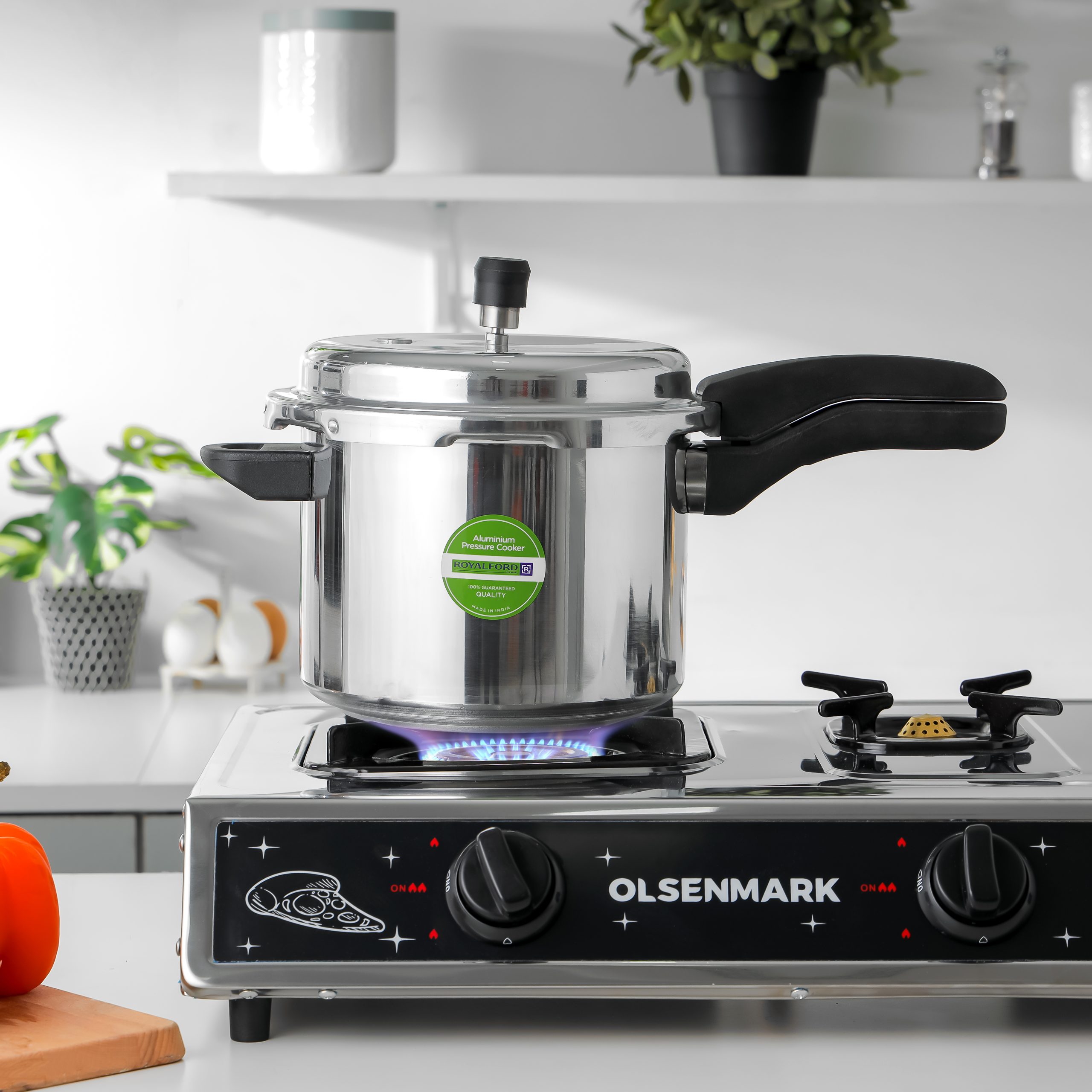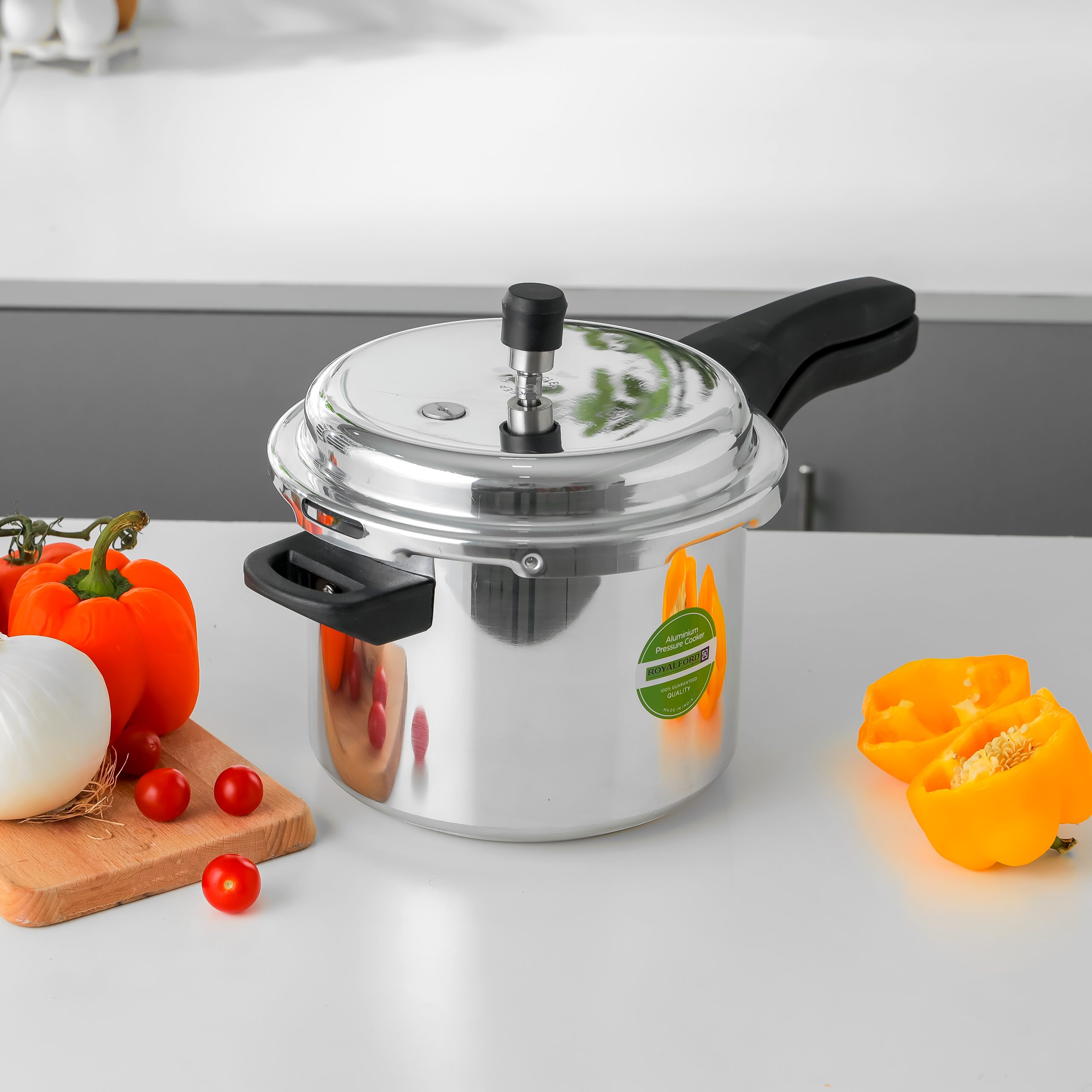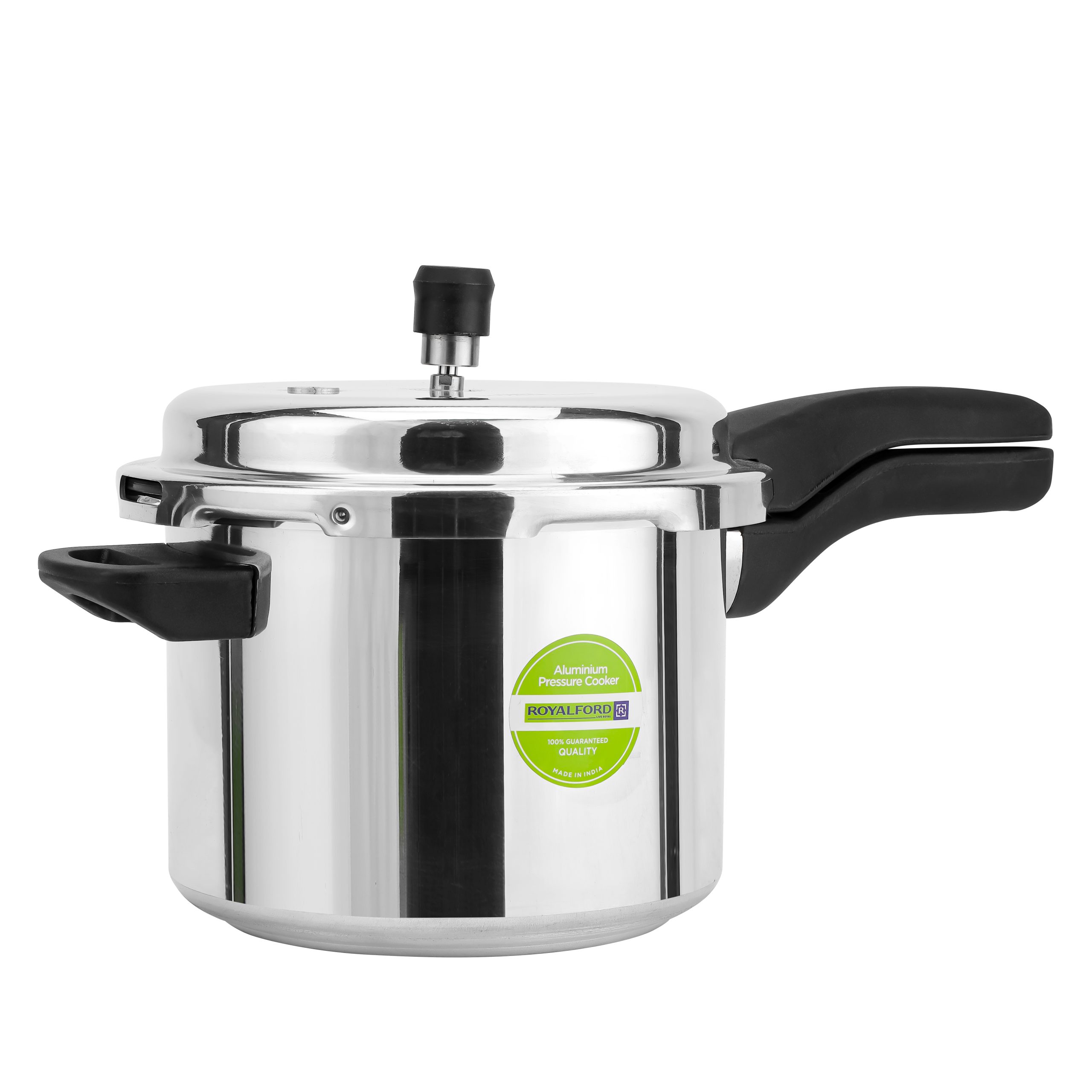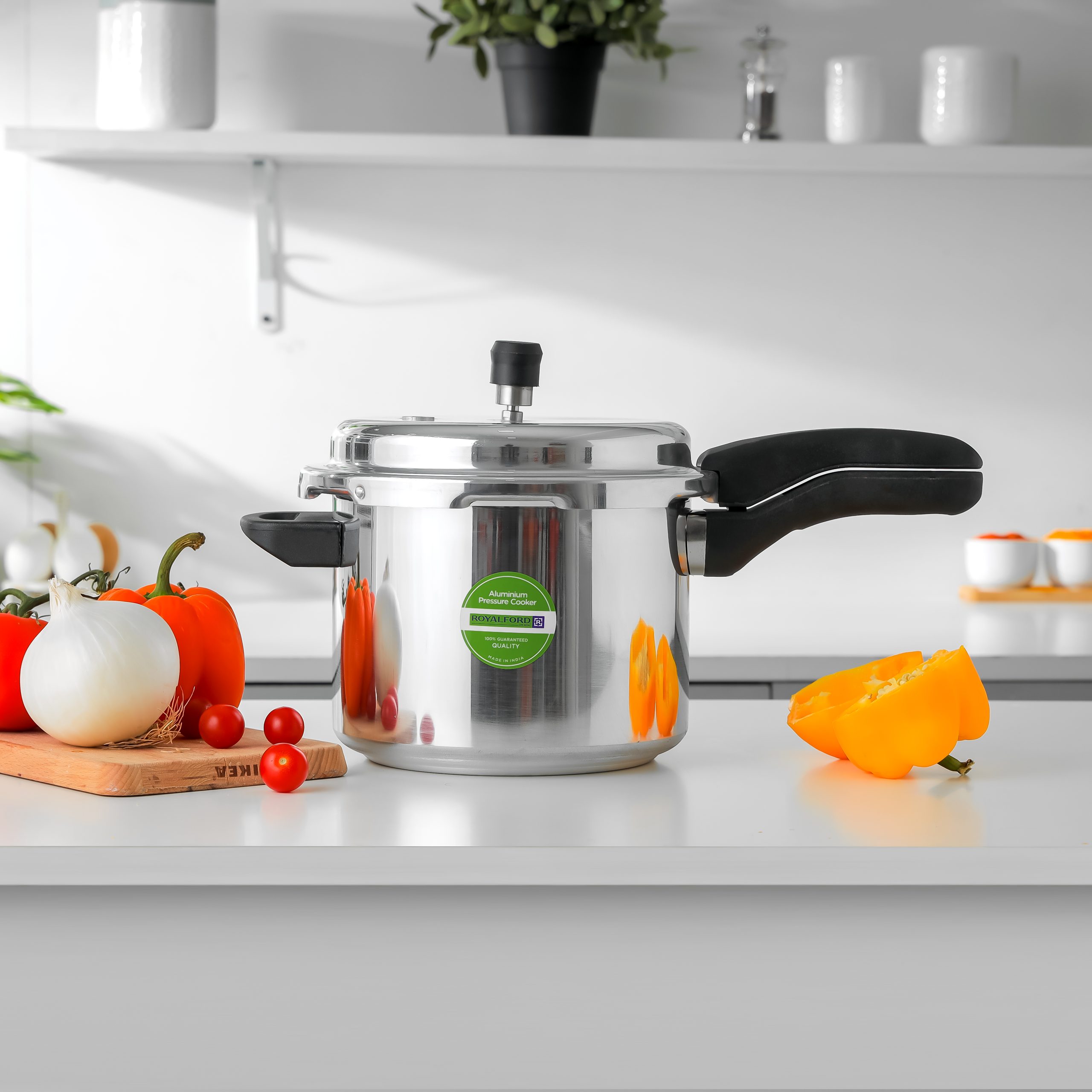 Enjoy the tradition in the comfort of your own home. Royalford offers a strong and efficient aluminum pressure cooker with a stepped bottom design. The pressure cooker has a variety of uses and is suitable for healthy everyday cooking. The cooker is made with high-quality, food-safe materials and built to last for a long time. The pressure cooker has a large capacity of 5.0 liters and is suitable for cooking for the entire family. It is ideal for both boiling and slow cooking, such as preparing rice, curries, porridge, soups, and much more. The specially designed cooker has an improved pressure regulator and an anti-implosion lid to ensure a safe cooking experience. The specially designed pressure regulator ensures quick and safe cooking, thus saving you time. The handles are ergonomically designed to provide a firm and comfortable grip, even with wet hands. It is strong and riveted to withstand weight while lifting the cooker. The pressure cooker has a thick base, which ensures even heat distribution. The cooker works with gas, ceramic, hotplate, and halogen stovetops. The cooker uses eco-friendly materials and less energy. It is also user-friendly. The pressure cooker has a diameter of 25 cm, a length of 40 m, and a height of 23 cm. A premium-quality aluminum pressure cooker makes an excellent gift for housewarmings, anniversaries, farewells, etc. Furthermore, the Royalford aluminum pressure cooker comes with a 2-year manufacturer’s warranty.