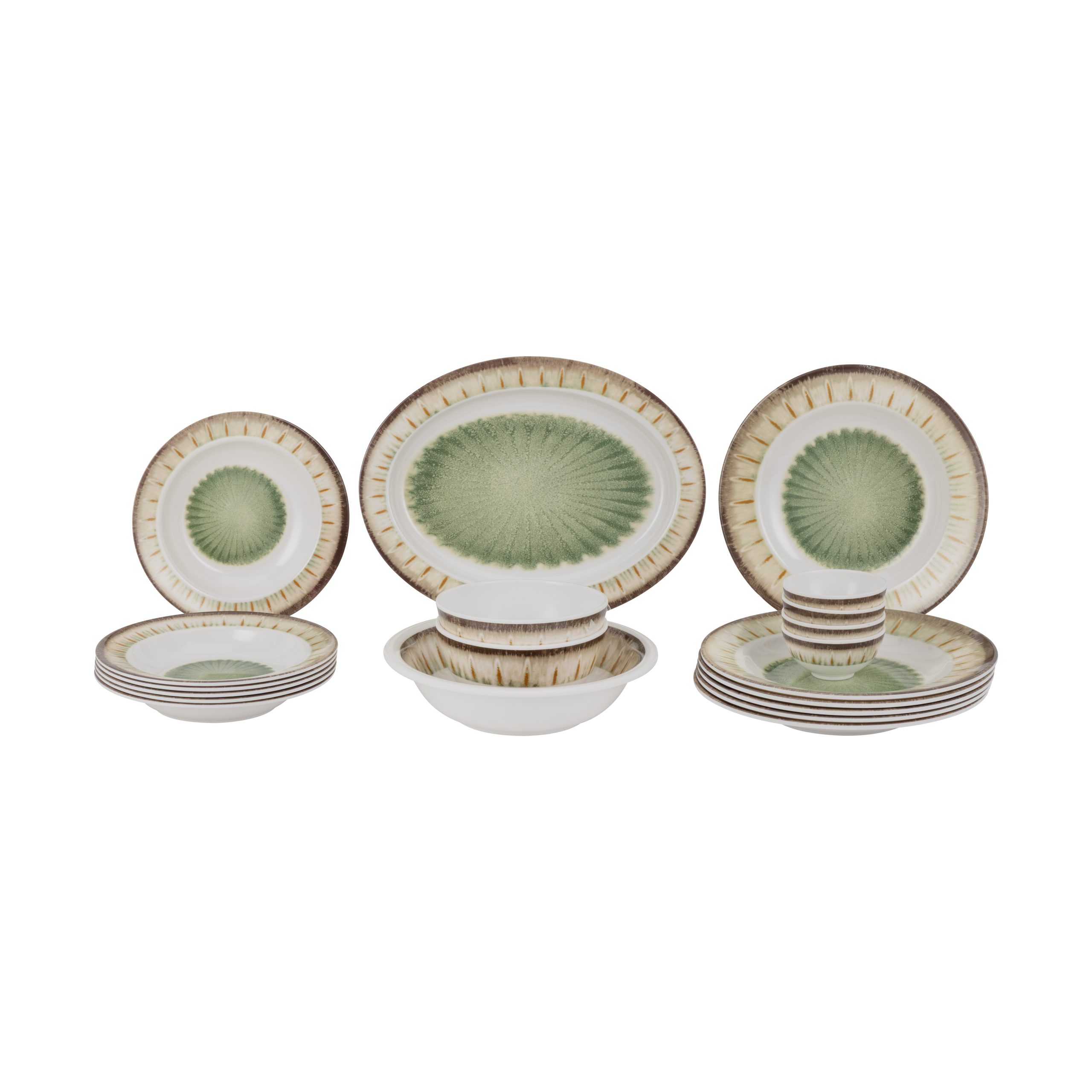 Royalford Greenyard 20 Piece Melamine Dinner Set- RF12946/ Includes Oval Tray, Deep Plates, Salad, Rice and Side Bowls/ Dishwasher-Safe and Freezer-Friendly/ Eco-Friendly and Food-Grade/ White and Green
