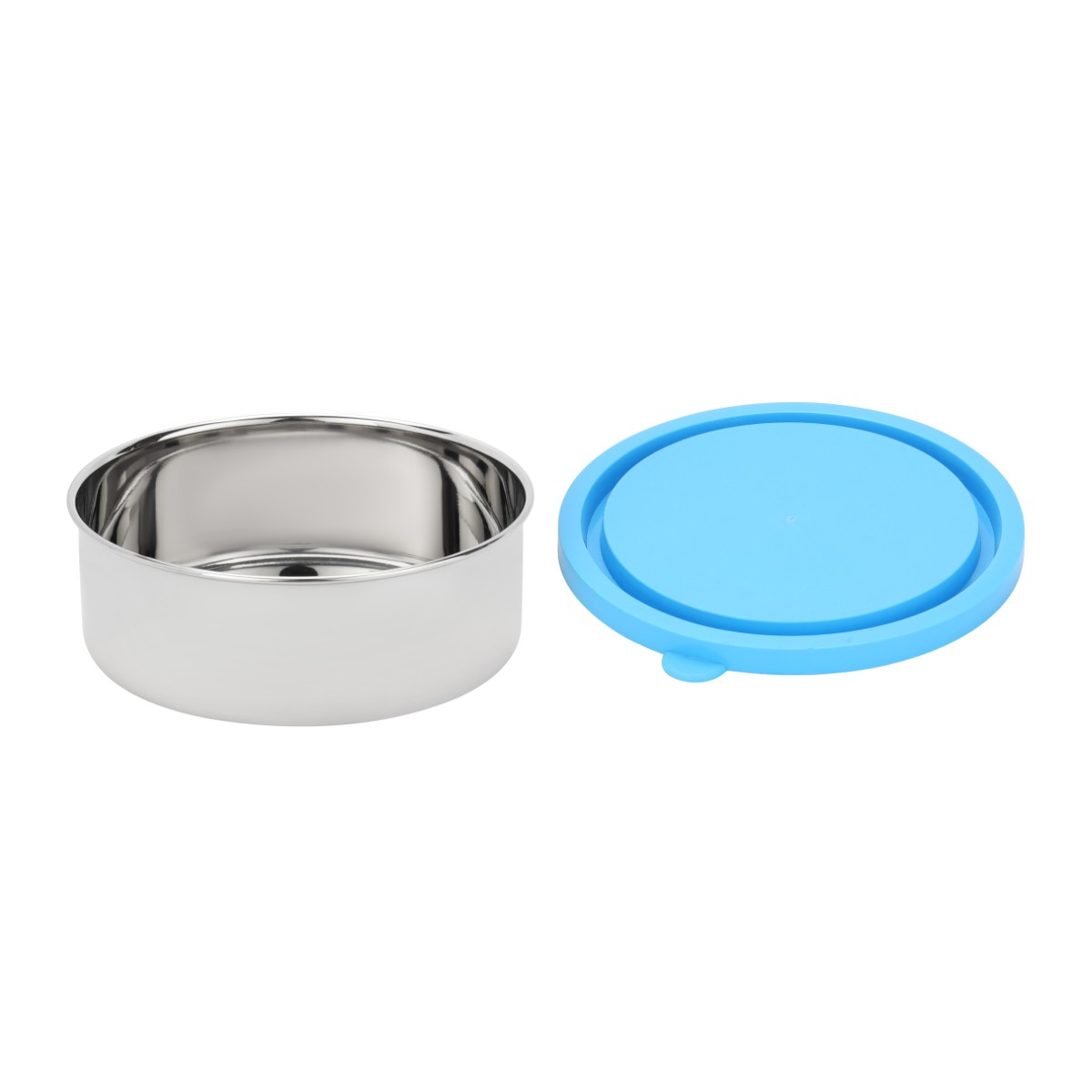 Royalford 13.5 cm Stainless Steel Bowl- RF13008/ with Airtight Plastic Lid, Polished Finish, Easy to Clean/ Stackable Tiffin Box Design, Perfect for Home, Office, Travel, Storing Snacks, Condiments, Lunch, Leftovers, Small Meal Portions, etc./ Silver and Blue