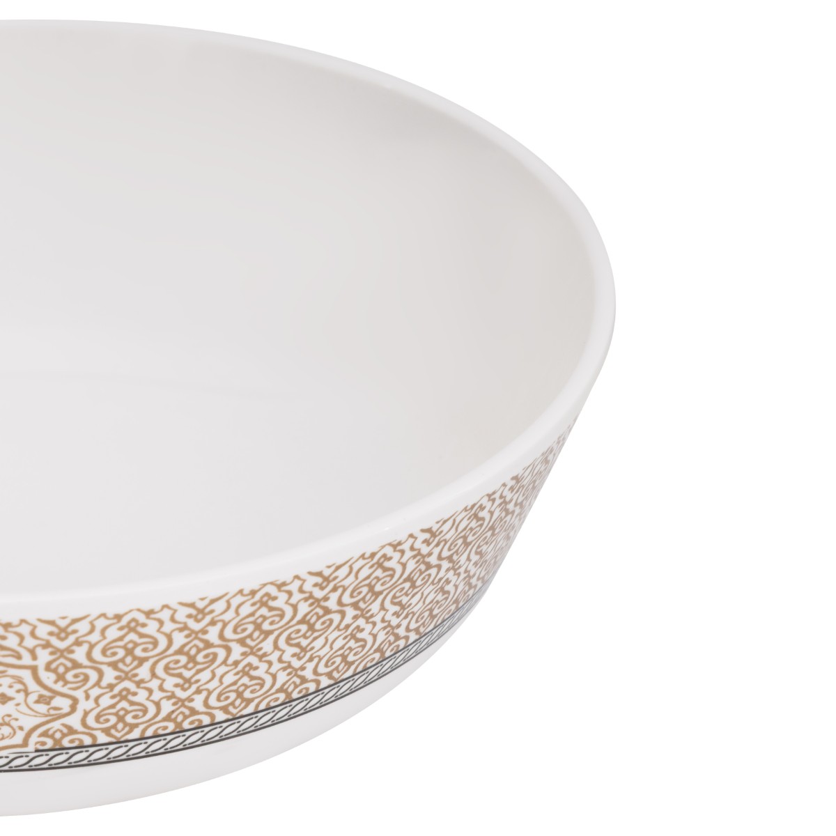 Royalford 7.5″ Melamineware Serving Bowl- RF13104/ Elegant Print, Non-Toxic and Hygienic/ Food-Grade Material, Dishwasher Safe/ Perfect for Serving Rice, Salads, Pasta, Curry, Snacks, etc./ White and Golden