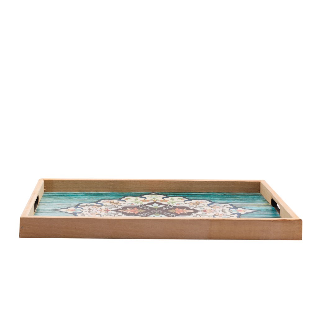From breakfast in bed to evening tea, this wooden tray is versatile and chic, enchanting any space. The Royalford offers you an appealing rectangular-shaped wooden tray to serve anything from snacks to beverages in style. It is a durable and stylish tray for all your needs. The tray is made of high-quality, strong, long-lasting, hygienic, odorless, and safe material and is specially designed for everyday use. The rectangular tray is adaptable and can be used for a variety of purposes. The tray features a contrasting tile printed design to leave your guests impressed. It can be used for serving food, drinks, etc., and has enough space to serve whatever you want in one go. The tray is also perfect at home on a nightstand, countertop, or desk as a catchall for all your essentials. It is ideal for placing vases, books, candles, keys, sunglasses, and other precious things. This is a staple for any clutter-free surface and keeps it classy. The elegant and sleek design effortlessly blends in with your home dcor. The tray will add the right amount of color and texture to your hosting space. and is certain to impress your guests. The tray can be used at home, in restaurants, or on any occasion. Made with top-quality material, this tray is durable and has a longer shelf life. The lightweight tray has ergonomically designed handles to ensure a comfortable and firm grip. This tray is break-resistant and is a safe replacement for ceramic and glass trays. The tray looks both elegant and chic and comes in two different prints to choose from, which will help you to create your own trend statement. It is also easy to clean. The wooden tray measures 42 x 30 cm in size and weighs 0.600 kg. The tray has a smooth and rounded edge, making it convenient to carry around.